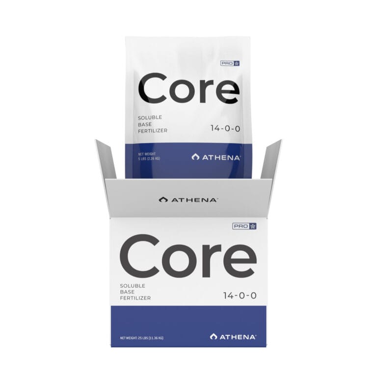 Athena Pro Core provides a strong baseline nutrition across all stages of plant growth. Nitrogen to assemble chlorophyll and amino acids. Calcium to build structure. Essential microelements to catalyze photosynthesis, enzyme production, and a multitude of important plant processes.
