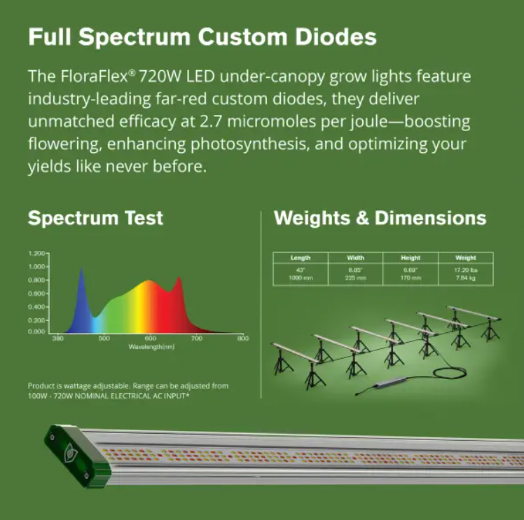 720W Total Output – Includes 6 x 120W full-spectrum LED bars for maximum under-canopy illumination